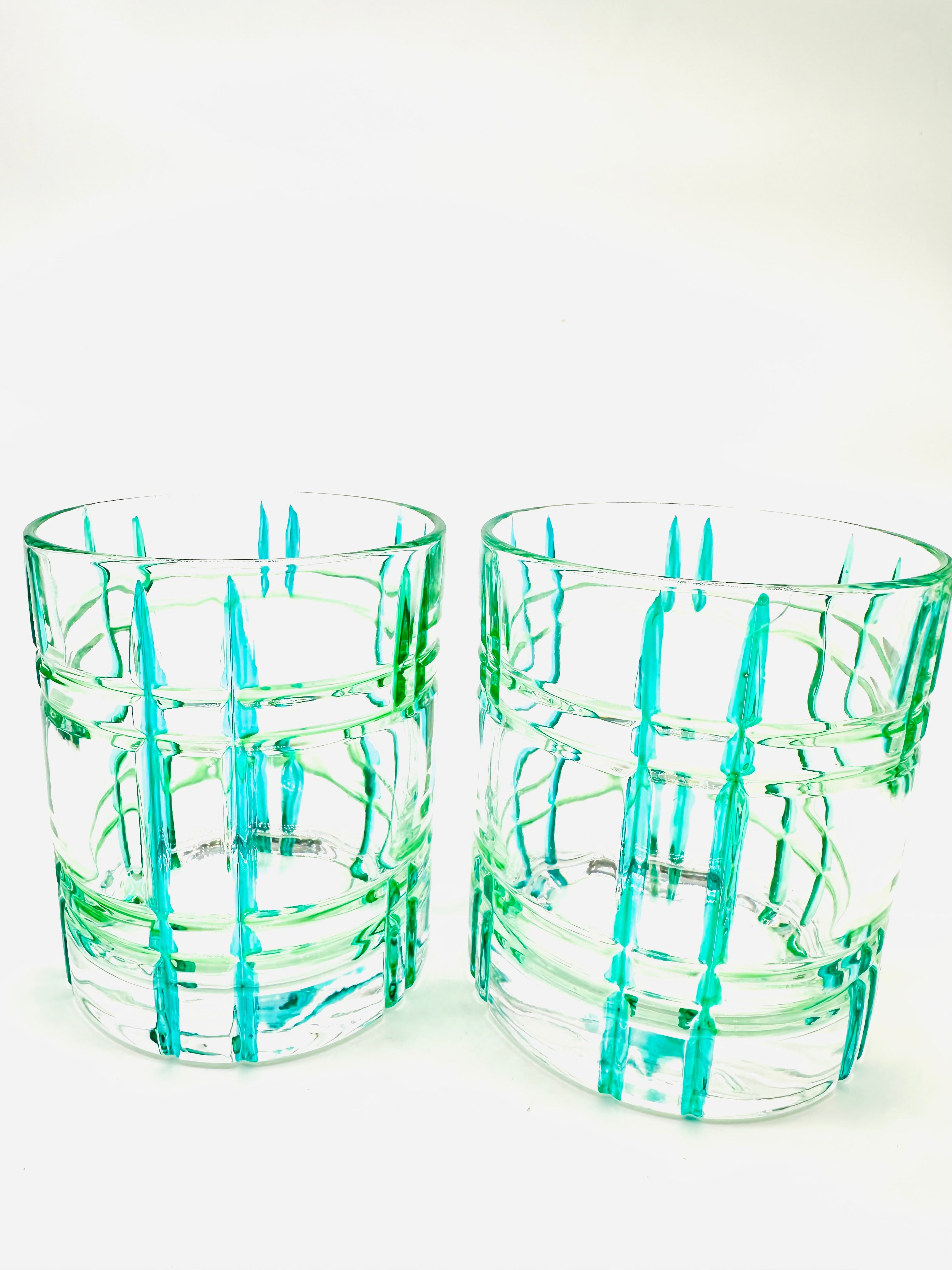 Ani whiskey or water tumbler in shades of green - 2 pieces