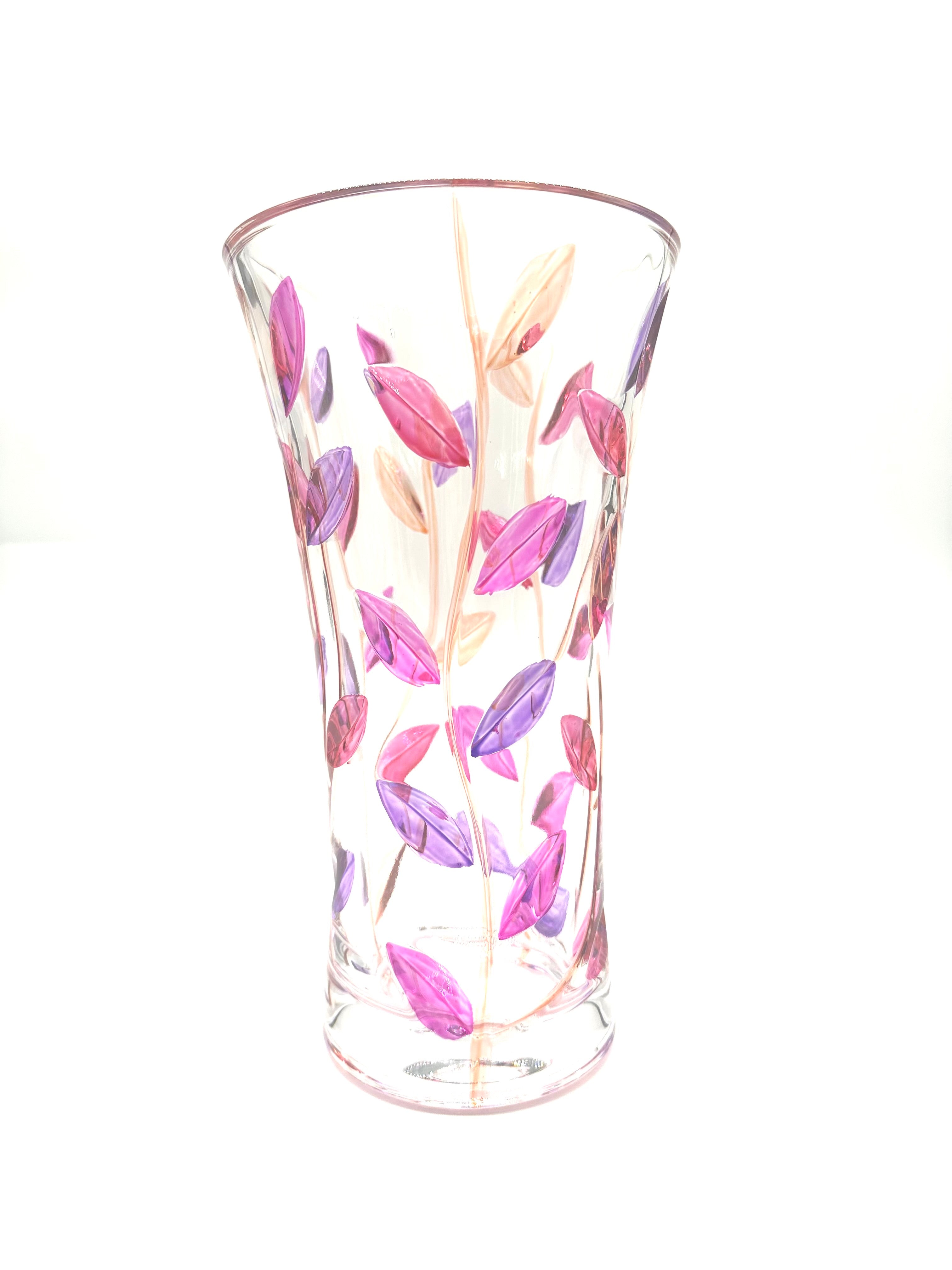 This transparent glass vase has an elegant, luminous presence designed to capture the light and transform it into color. It's silhouette is slender and harmonious; a stable cylindrical base that gently opens toward the top, creating a soft, natural movement.