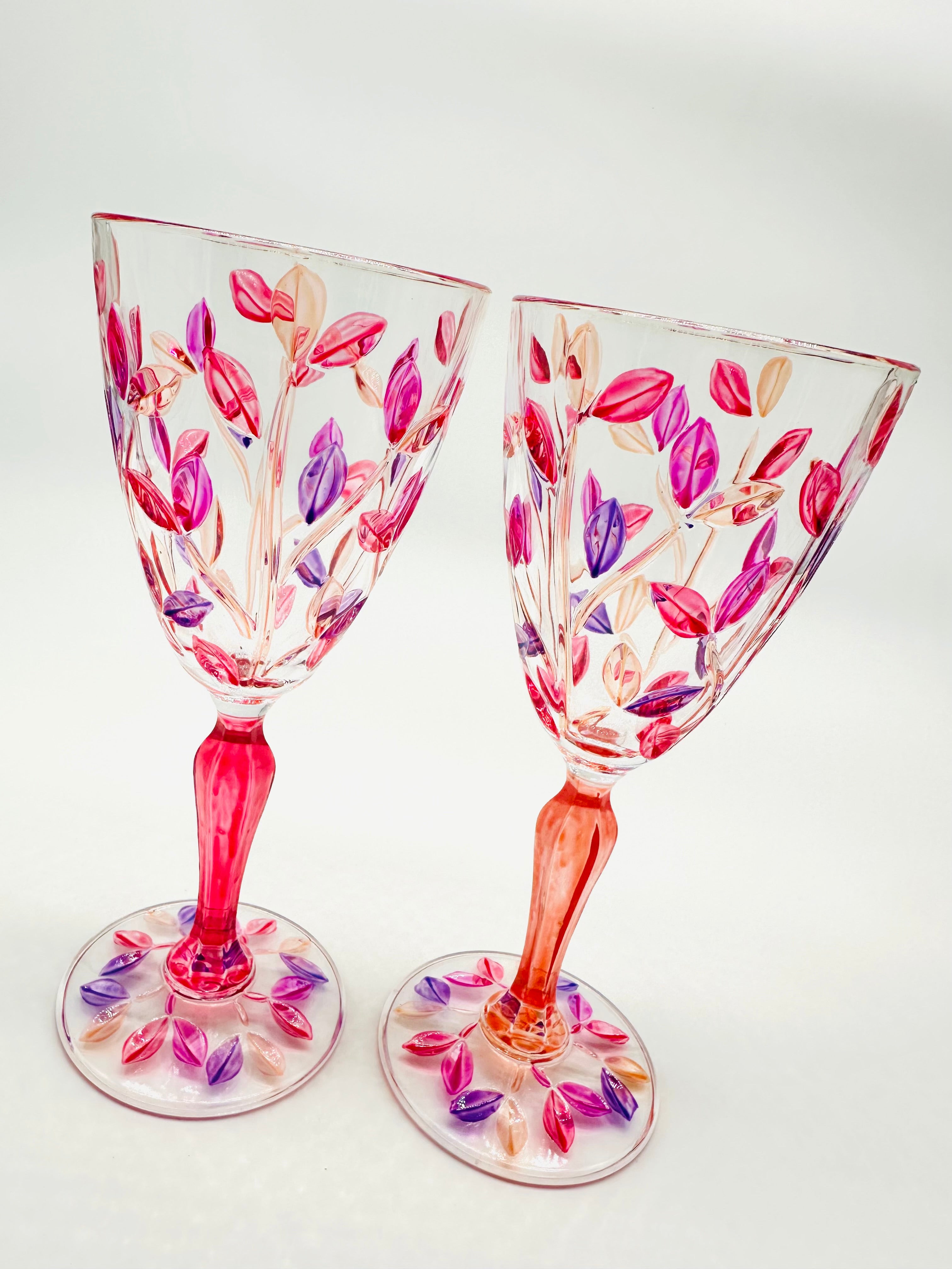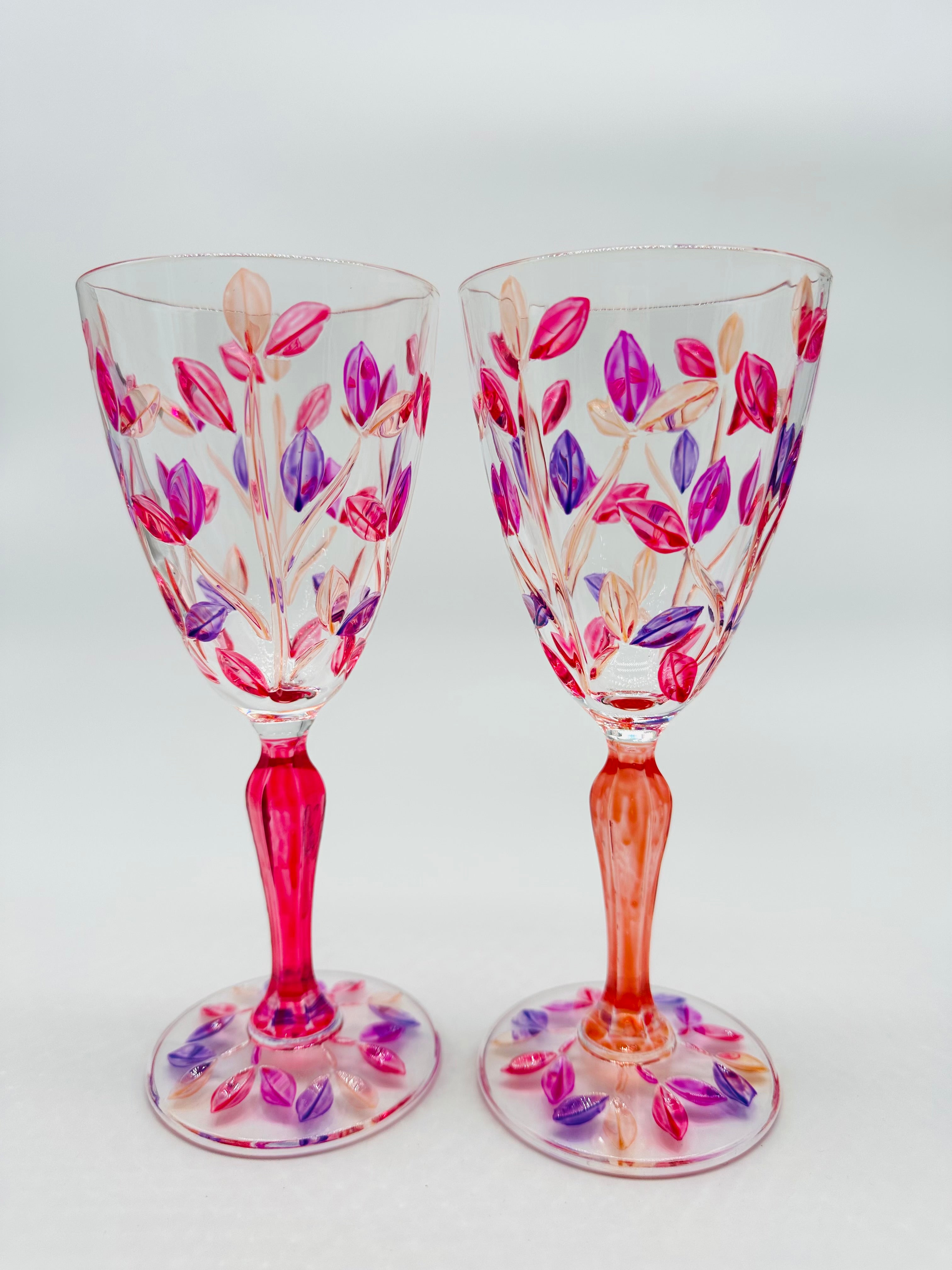 Leaves Water Goblets in shades of pink - 2 pcs.