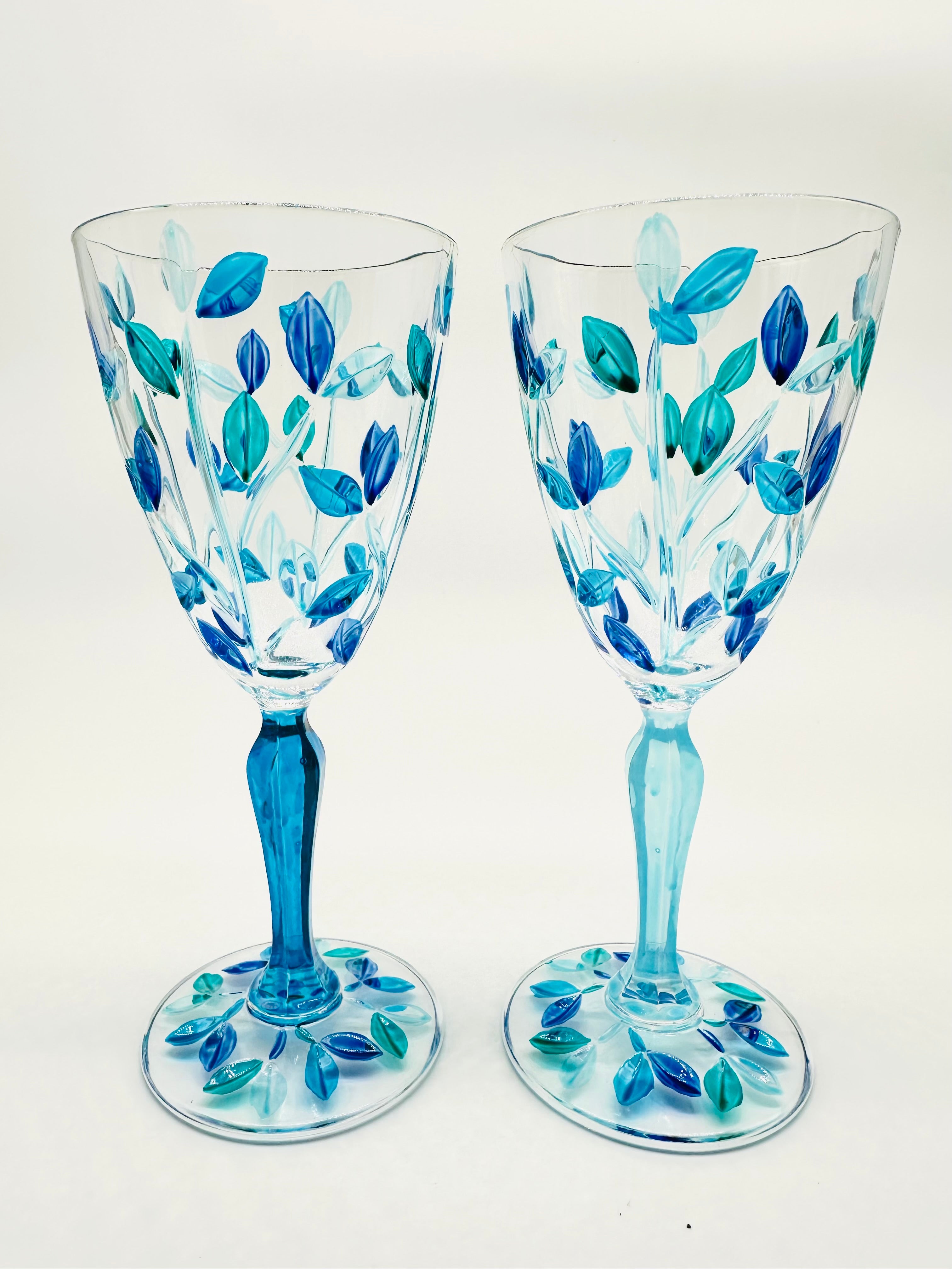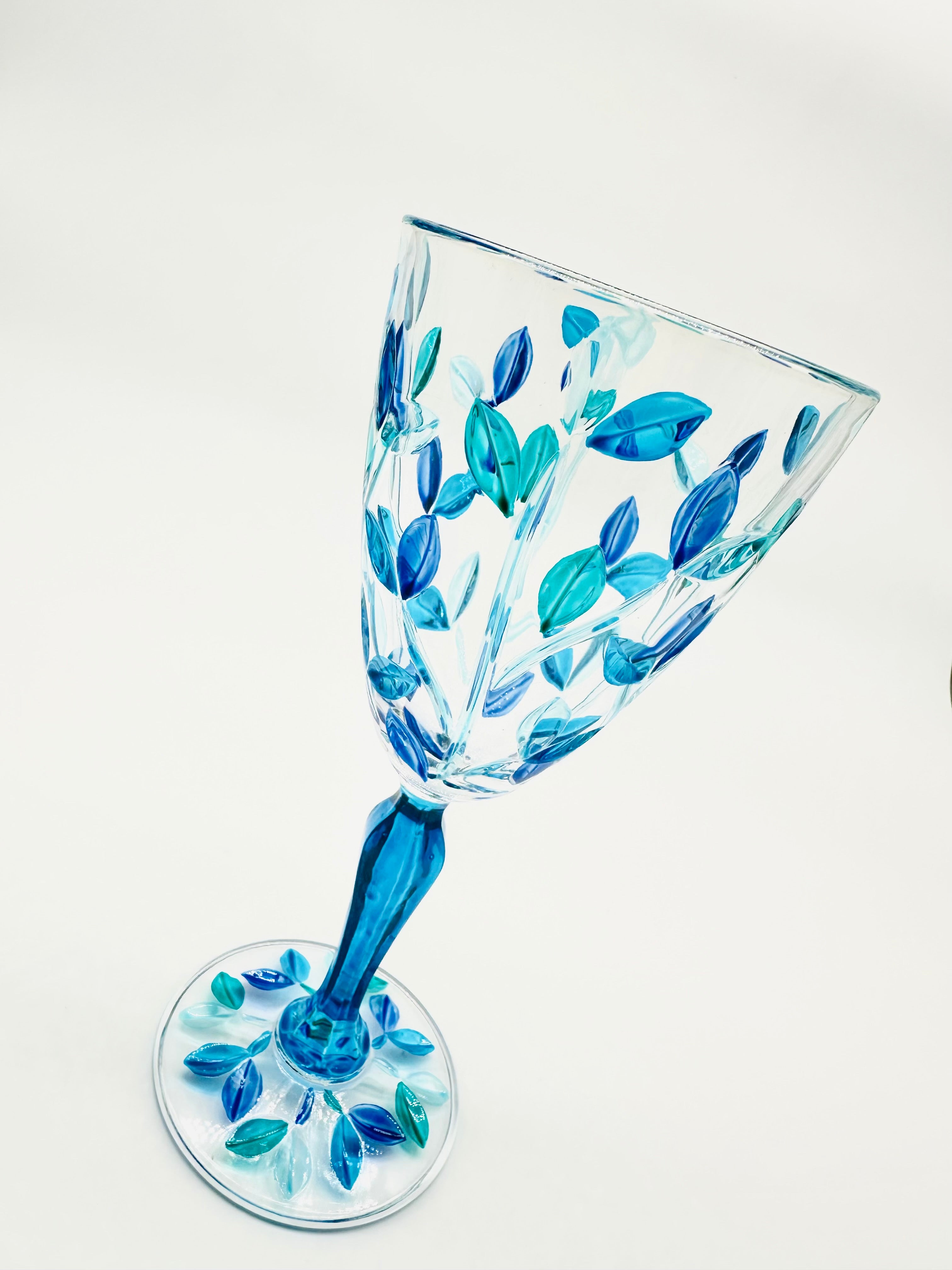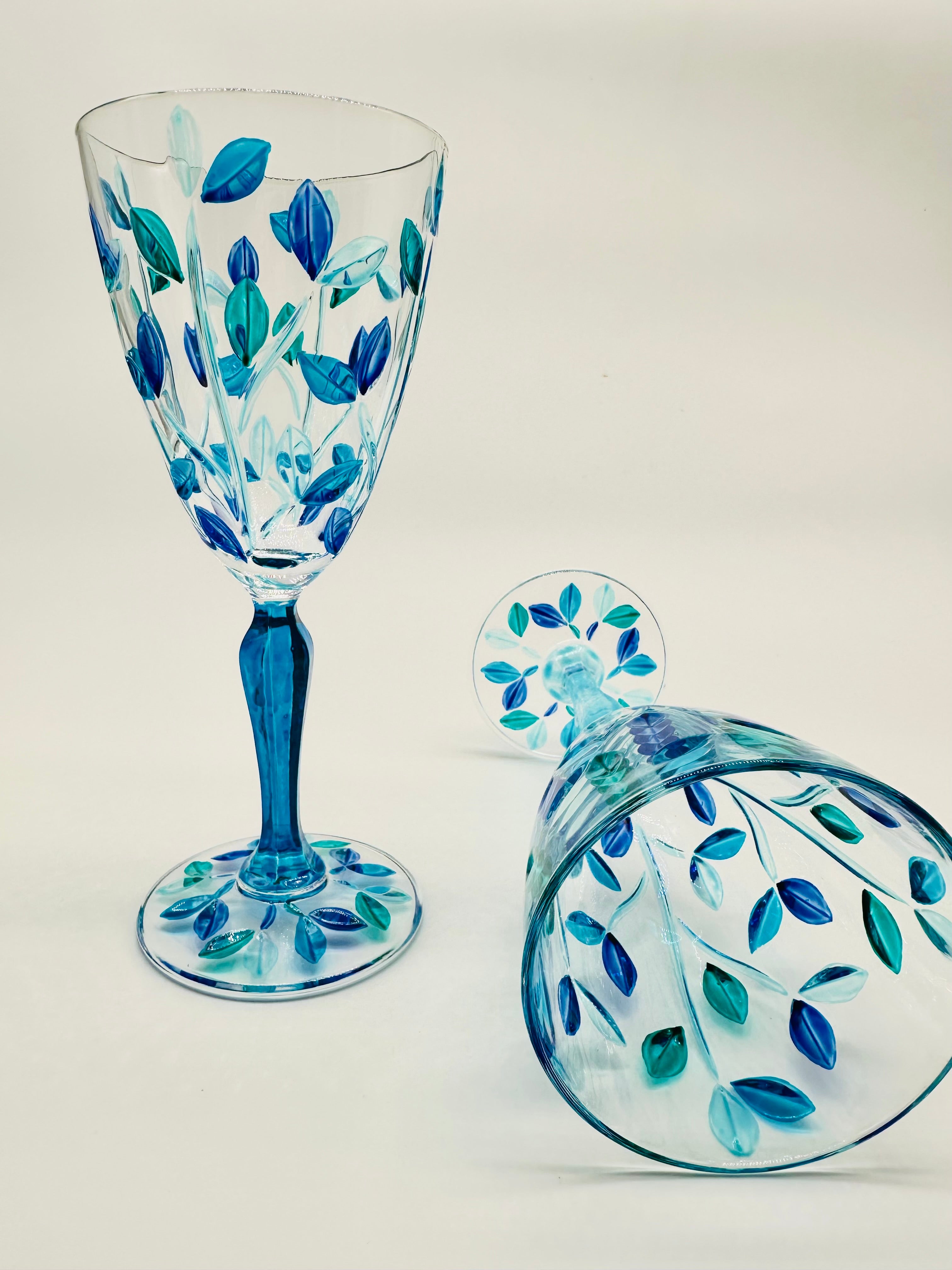 Leaves Water Goblets in shades of green and blue - 2 pcs.