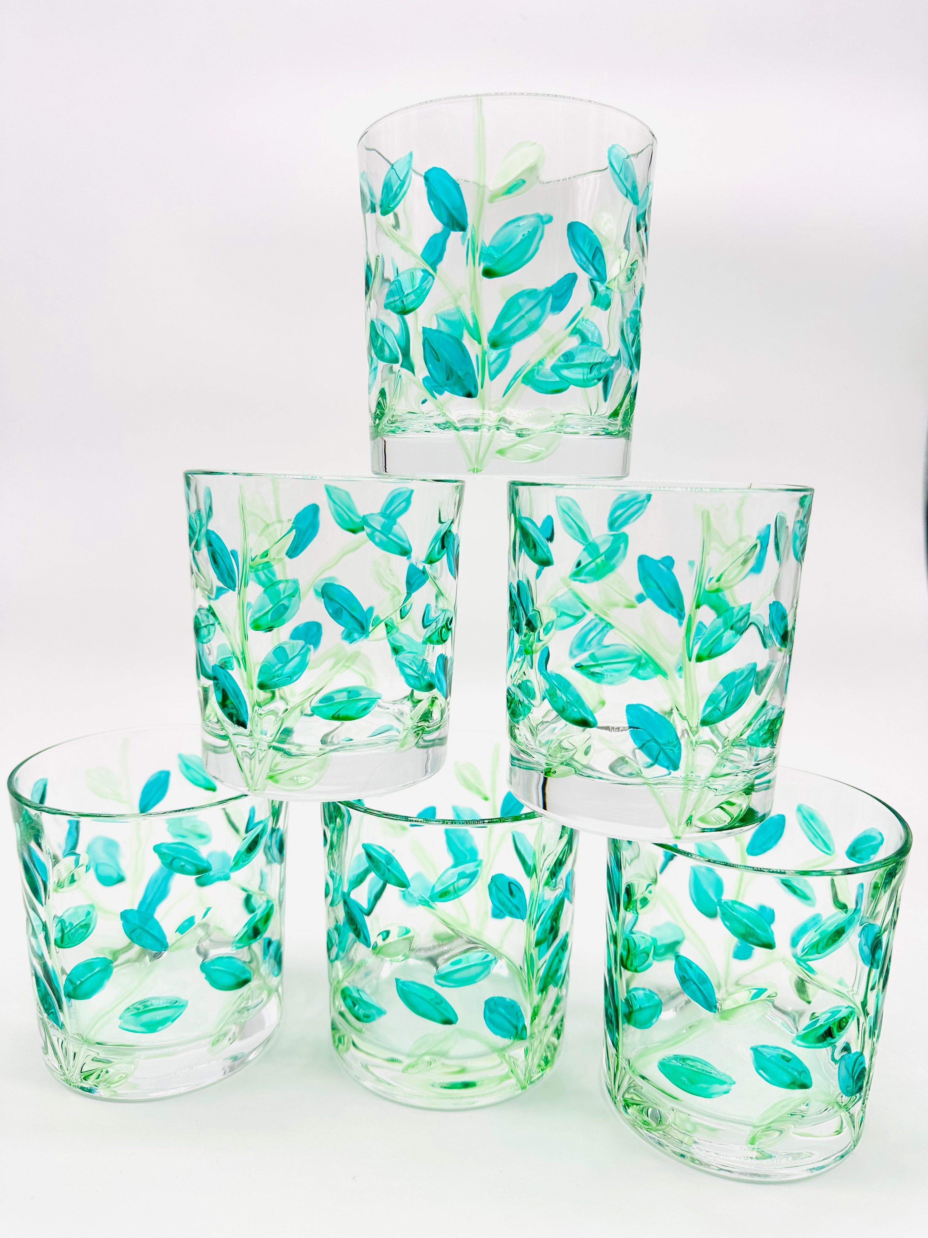 Leaves whiskey or water tumblers in shades of green - 6 pcs.