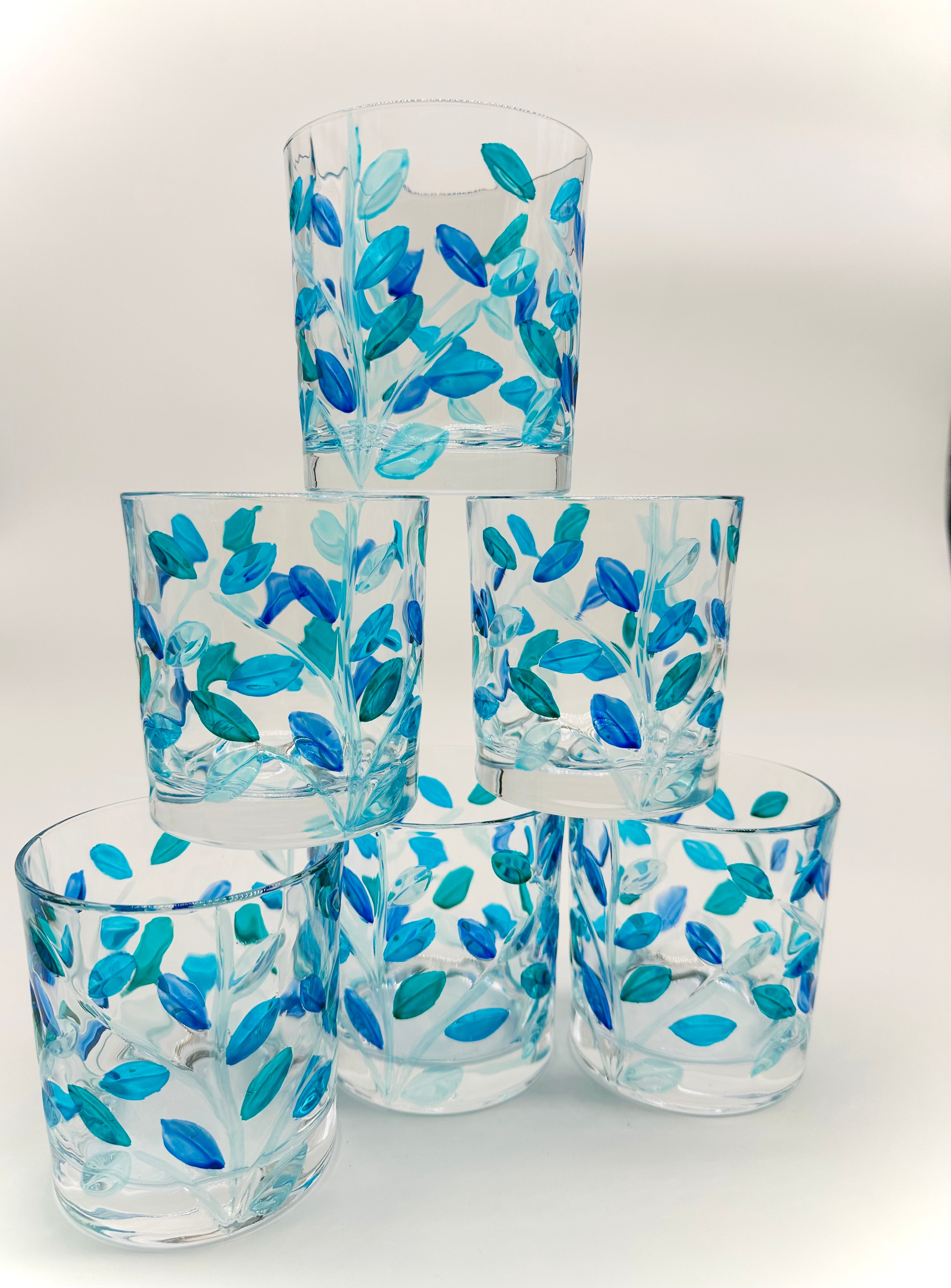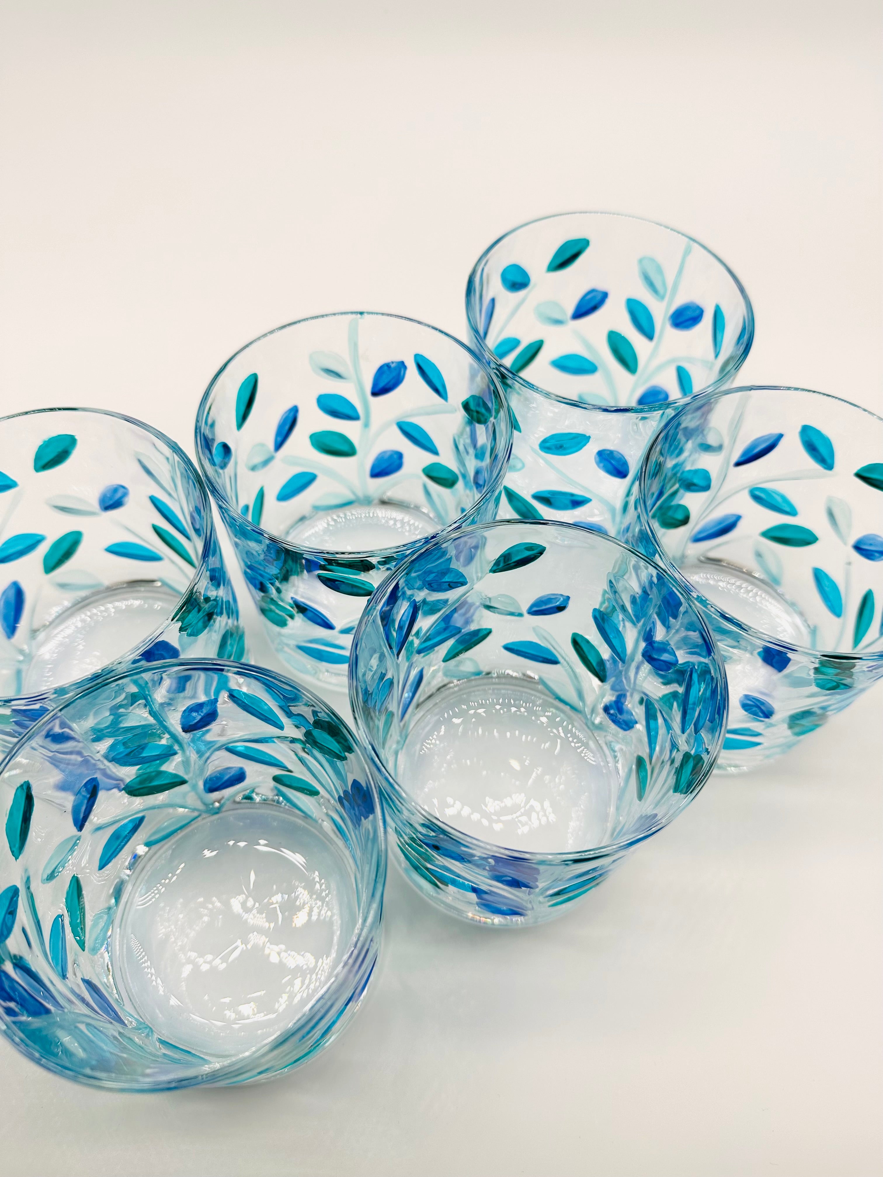 Leaves whiskey or water tumblers in shades of green and blue - 6 pcs.