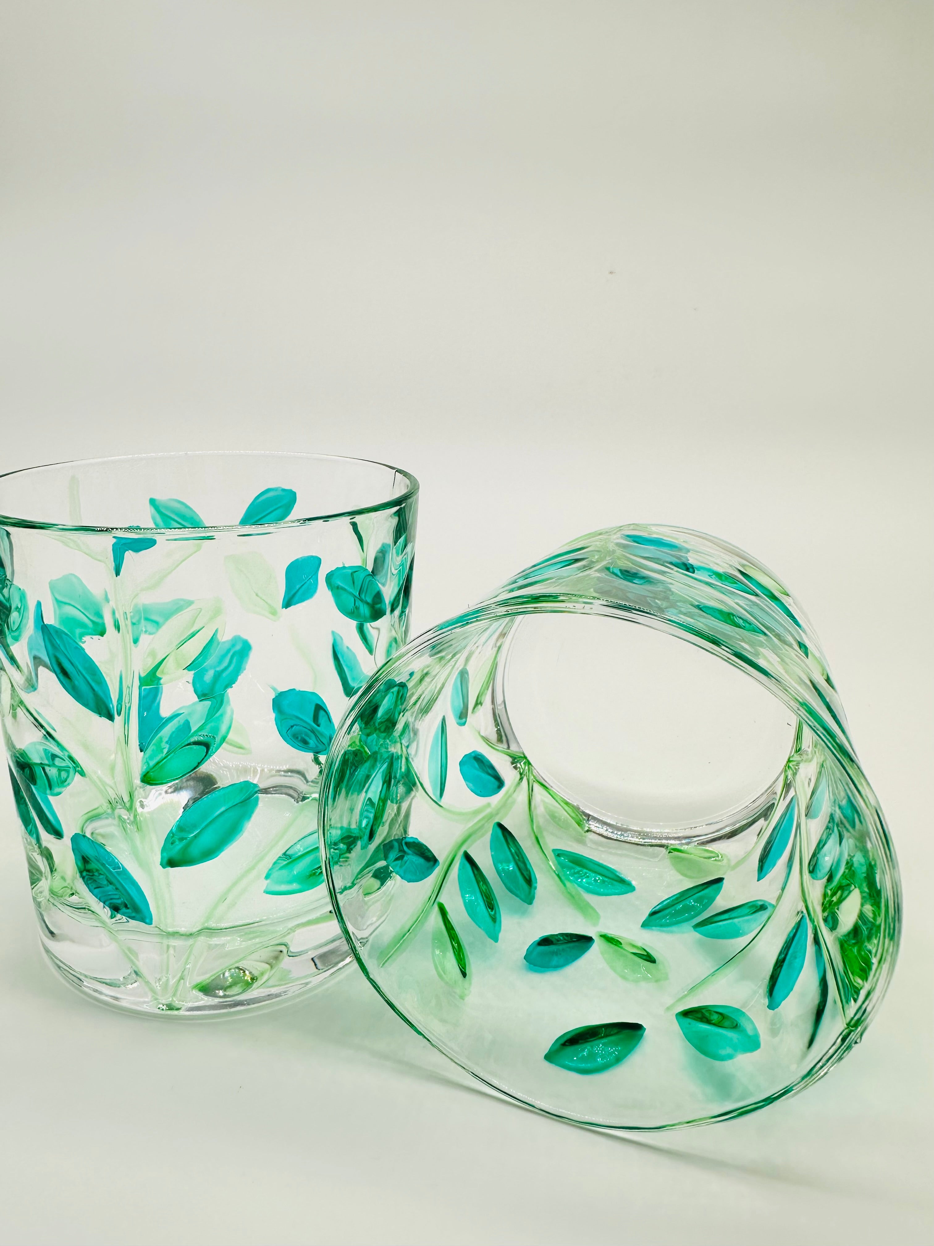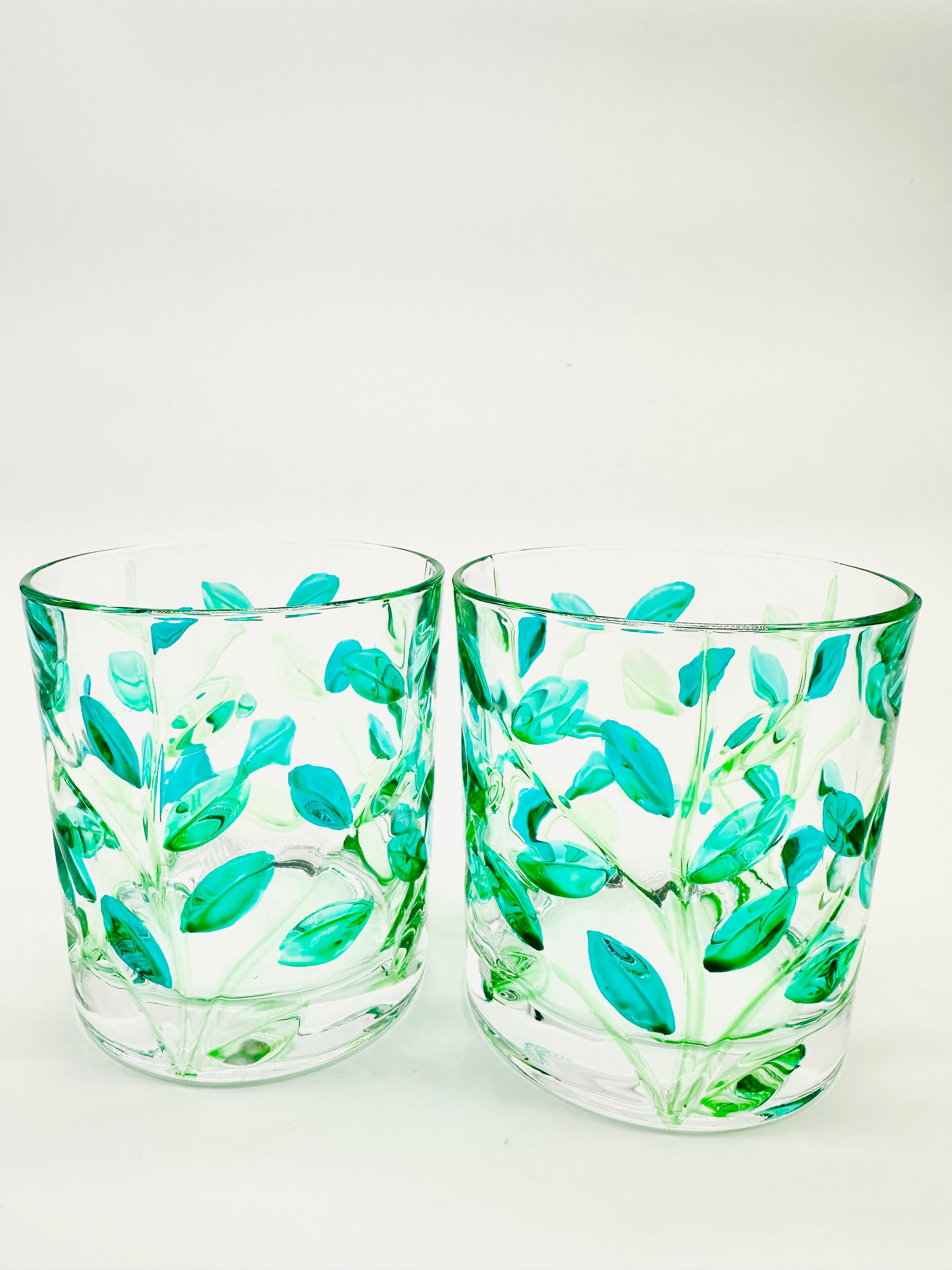 Leaves whiskey or water tumblers in shades of green - 2 pcs.