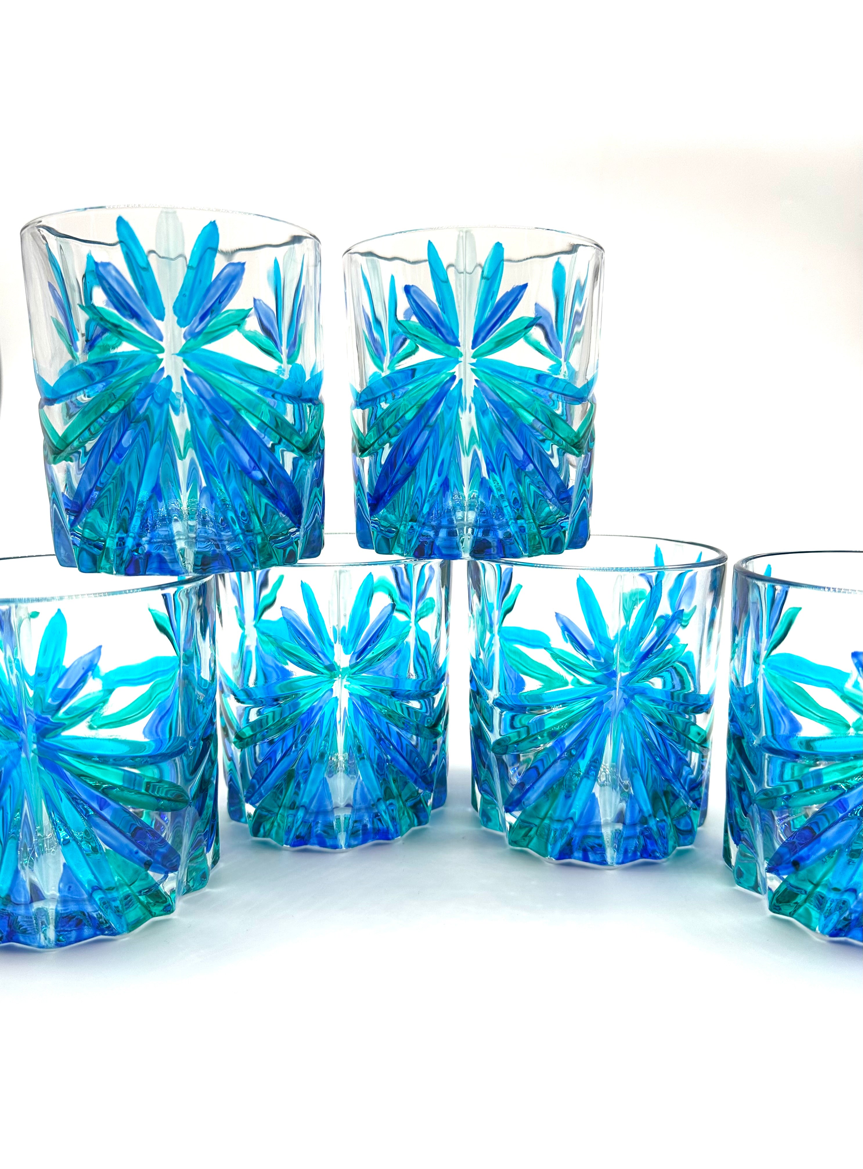 Oasy water or whiskey tumblers in shades of green and blue- 6 pcs.
